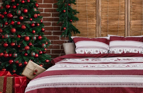 31515/1 Pościel flanelowa świąteczna Flanelove Darymex bordowa granatowa– komplet 100% bawełna, ciepła i miękka