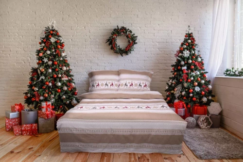 F-87 Pościel flanelowa świąteczna choinki bombki Matex biały