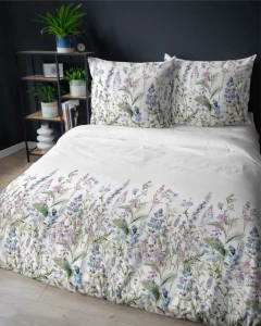 5222 A Pościel satynowa akwarelowe kwiaty w odcieniach lawendy Detexpol