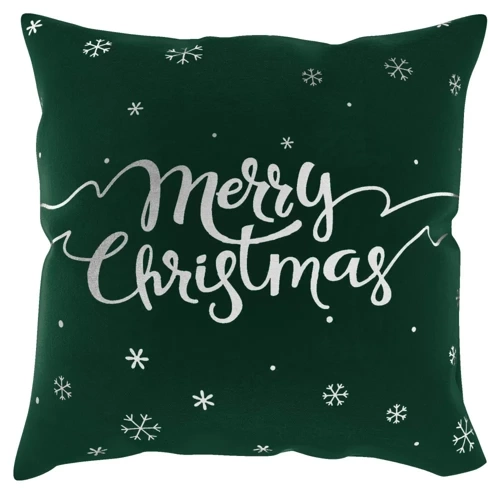 Poszewka świąteczna dekoracyjna Holly Jolly Faro – mikrofibra, zielona z reniferami i choinką