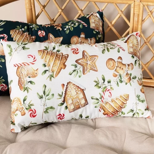 5379 A Poszewka świąteczna dekoracyjna Christmas Deco Detexpol domek z piernika i gwiazdki - zamek błyskawiczny