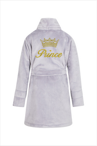 Prince + korona Szlafrok dziecięcy polarowy ByShelly - szary/złoty