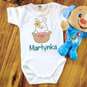 "Wielkanoc – Zajączek w koszyczku z imieniem" Body krótki rękaw Moocha biały