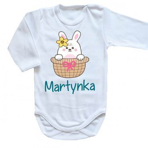 "Wielkanoc – Zajączek w koszyczku z imieniem" Body długi rękaw Moocha biały