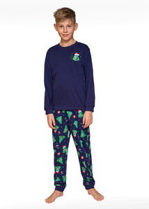 966/167 Christmas Tree Piżama chłopięca Cornette granatowy