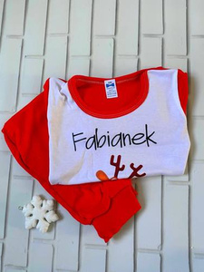Piżamka świąteczna dla dzieci z reniferem i imieniem FABIANEK Moocha czerwony