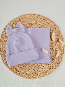 15K Czapka z kokardką prążek podwójna Marija - fiolet