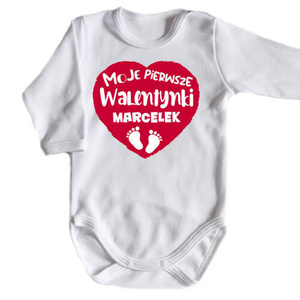 SKU N070 "Moje pierwsze Walentynki+ imię" Body długi rękaw Moocha biały