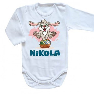 "Wielkanoc – Zajączek w koszyczku z imieniem" Body długi rękaw Moocha biały