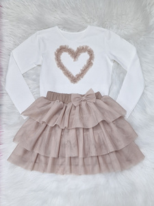 Bluzka dziewczęca Mia Bambarillo ecru bordowe serce– bawełniana z tiulowym sercem