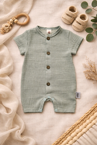Rampers niemowlęcy Just Muslin 02235RM Makoma mint– muślin 100% bawełna, krótki rękaw