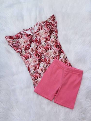 KAR-0025 Bloomers Krótkie spodenki z dzianiny prążkowej z kokardką Lagarto Verde - różowy