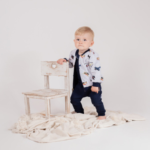 219096 Willy Nicol body niemowlęce bawełniane granatowe prążkowane rozpinane – długi rękaw