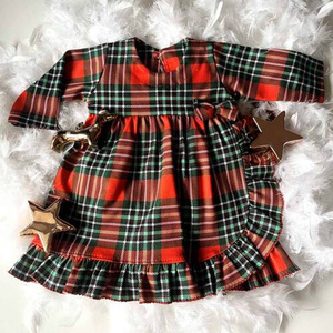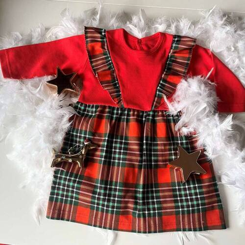 SK01 Merry Christmas Sukienka z długim rękawem Mamatti - czerwony kratka