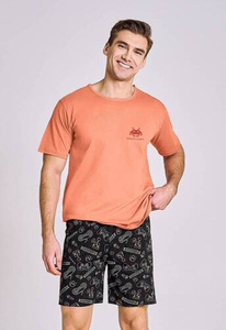 Eliasz Piżama Męska krótki rękaw i spodenki Italian Fashion - druk/czarny