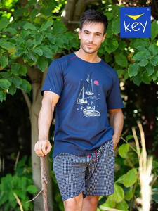 Junak Piżama Męska krótki rękaw i 3/4 spodnie Italian Fashion - niebieski/granat