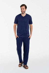Akord Piżama Męska krótki rękaw, długie spodnie Italian Fashion - granatowy
