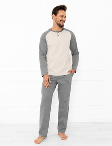 Piżama męska Premium 43455 New Henderson szara – bawełniana, długi rękaw, eleganckie opakowanie