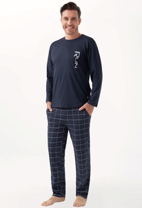 Piżama męska 810 Luna granatowa – bawełna, długi rękaw, spodnie z kieszeniami
