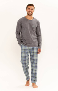 Juliusz Piżama Męska długi rękaw, długie spodnie Italian Fashion - śr.melanż/c.melanż