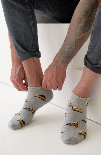 1290-029 Skarpety męskie świąteczne Milena melanż jasny – Renifer I Cukrowe laski, bawełniane