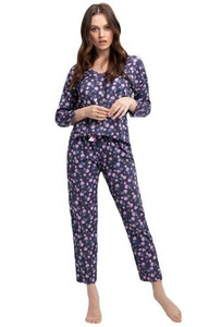 Tess Piżama Damska długi rękaw i długie spodnie Italian Fashion - czerwony/druk