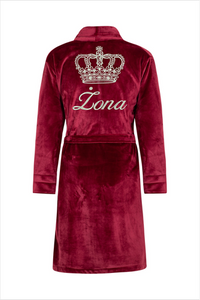 Queen + Korona Szlafrok damski polarowy ByShelly - bordowy/złoty