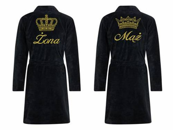 Żona + Korona Szlafrok damski polarowy ByShelly - czarny/złoty