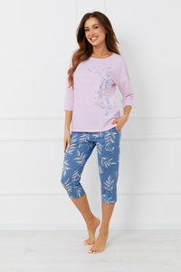 Piżama damska Erula Italian Fashion bawełna jersey 3/4 plus size- niebieska