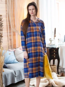 LNS 481 Flanela Bawełniana Piżama Damska Key - granatowy