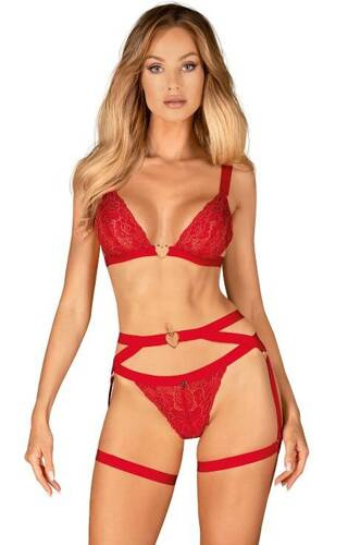 Komplet Matildea Bra & Crotchless Thong Obsessive – biustonosz z fiszbinami i otwarte stringi