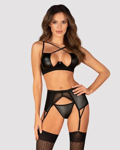 Komplet Euridia 3-częściowy Obsessive czarny– biustonosz, stringi i pas do pończoch