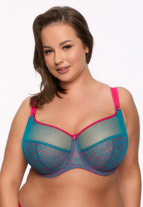 BS 1294 Cintia Biustonosz soft Gaia – fuksja-turkusowy, konstrukcja S16, koronka i tiul