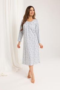Koszula nocna damska Regina 017 niebieska– bawełna, długi rękaw, wygodna i klasyczna
