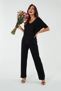 Lisa — damski komplet: top + spodnie, 95% bawełna 5% elastan | polska marka Mirale - czarny