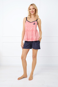 Flota Piżama Damska wąskie ramiączko, spodenki Italian Fashion - druk czerwony/granatowy