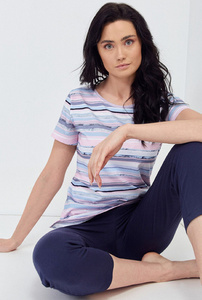 Styl Piżama Damska krótki rękaw, spodenki Italian Fashion - niebieski