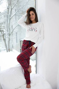 Makala Piżama Damska długi rękaw i długie spodnie Italian Fashion - czerwony/druk