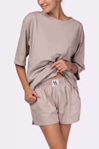 Betty Piżama Damska krótki rękaw, długie spodnie Italian Fashion - cappuccino/druk cappuccino