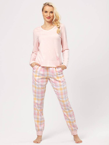Folk Piżama Damska długi rękaw, długie spodnie Italian Fashion - jeżyna/druk