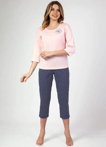 Julietta Piżama Damska 3/4rękaw, 7/8 spodnie Italian Fashion - łososiowy/druk