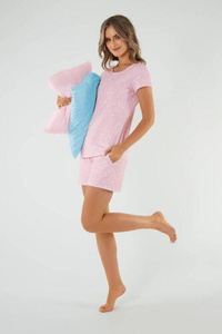 Tulip Piżama Damska krótki rękaw, spodenki Italian Fashion - różowy/druk