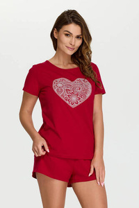 Ontega Piżama Damska krótki rękaw, spodenki Italian Fashion- amarantowy/granatowy