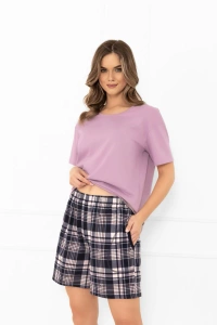 Piżama damska Donatella – bawełna, koszulka i szorty w kratę Italian Fashion – wrzosowy/druk