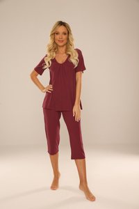 3639 Matylda Piżama damska Mewa burgund– jedwab wiskozowy, produkt polski, długość 3/4