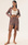 Piżama Iris PW72 Mefemi by Nipplex – brązowa, bawełniana koszulka + długie wzorzyste spodnie, komfortowa damska piżama premium