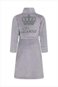 Queen + Korona Szlafrok damski polarowy ByShelly - biały/srebrny