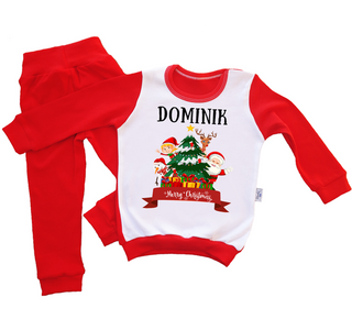 "MERRY CHRISTMAS" Piżamka świąteczna choinka dla dzieci z imieniem Moocha czerwony