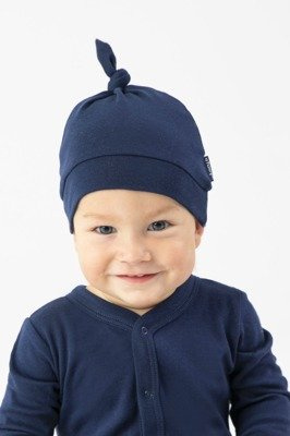 Merino Czapka wiązana niemowlęca Eevi granatowa – 100% wełna merynosów, termoregulacja