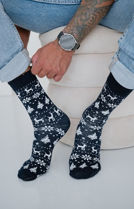 1290-031 Skarpety męskie świąteczne Milena czarny 01 – Renifer na nartach, bawełniane